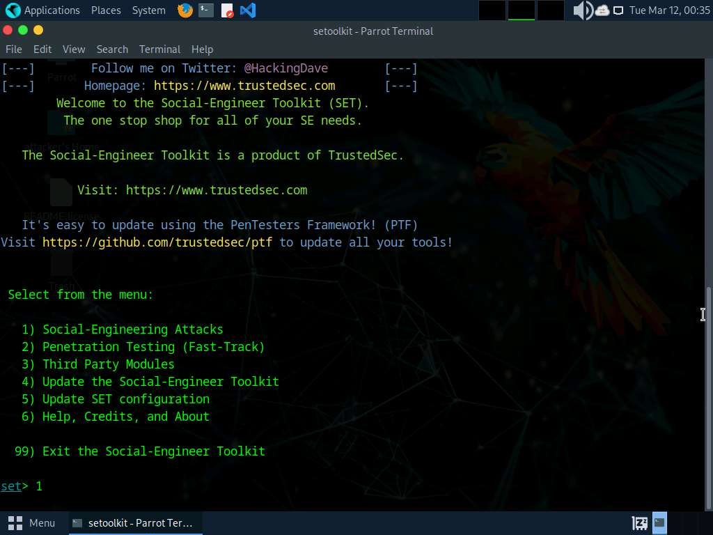 Task 1: Sniff Credentials using the Social-Engineer Toolkit (SET)