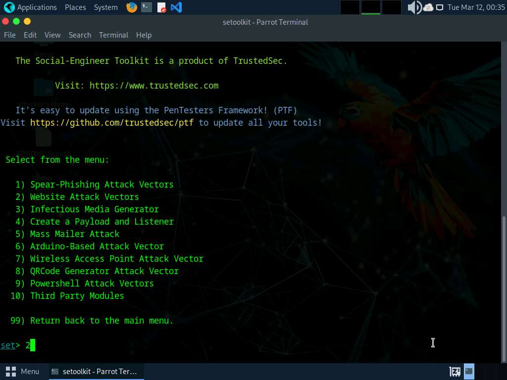 - setoolkit to launch Social-Engineer Toolkit.